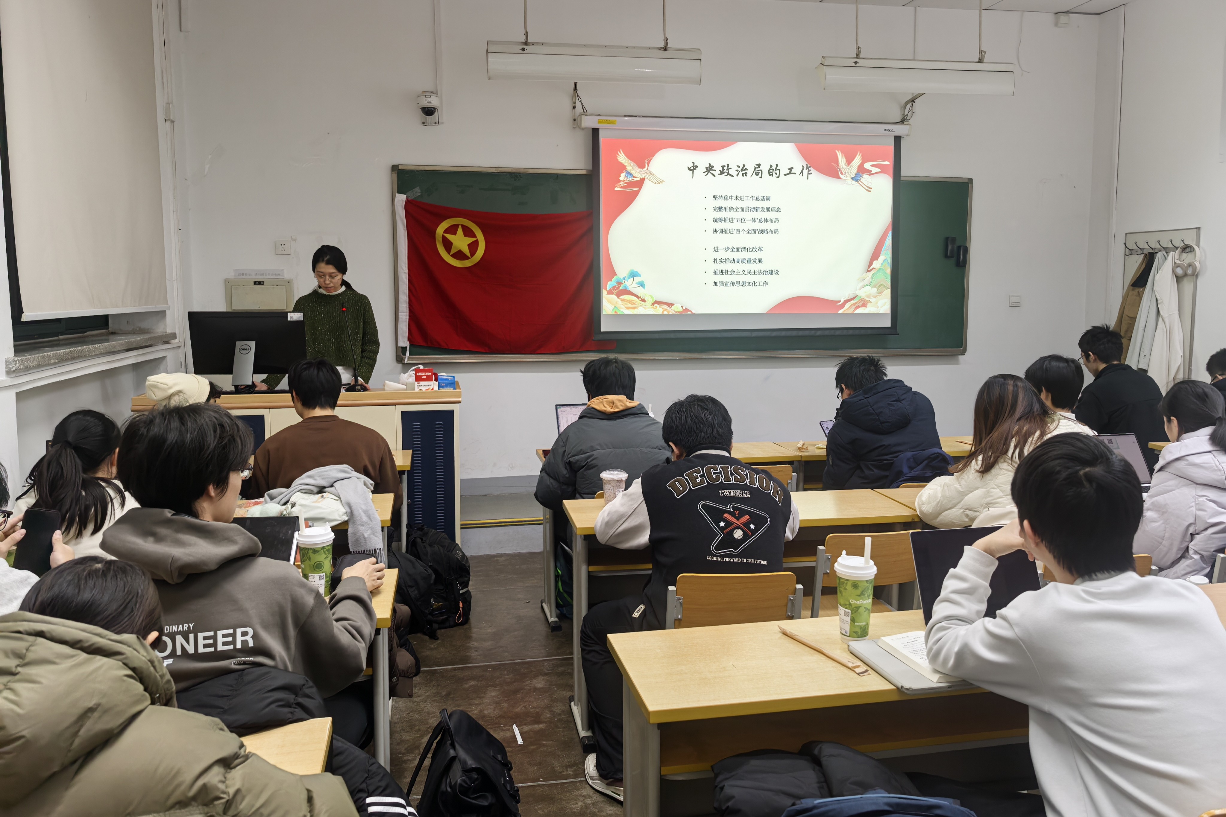 为推动全会精神学深悟透,各团支部积极邀请中国人民大学延河讲师团开展专题宣讲,以青年话语解读政策理论,让全会精神走出文件、走进青年心中。其中,统计学院2025级本科1班、3班联合开展主题活动,邀请延河讲师团杜佳诚回顾“十四五”成就、解读“十五五”蓝图,勉励大家在新征程上找准坐标、奋发有为;2025级本科2班特邀延河讲师团第五支队队长李想作题为“把握历史规律与时代方位——‘阶梯式递进’中理解二十届四中全会”的分享,通过案例介绍、专业解读、知识竞赛等环节,推动全会精神入脑入心;2025级本科5班邀请延河讲师团谢晓蕊,以塔拉滩光伏产业园“牧光互补”的生态实践为切口,解读绿色发展背后的“生态密码”,深化团员实践认知。