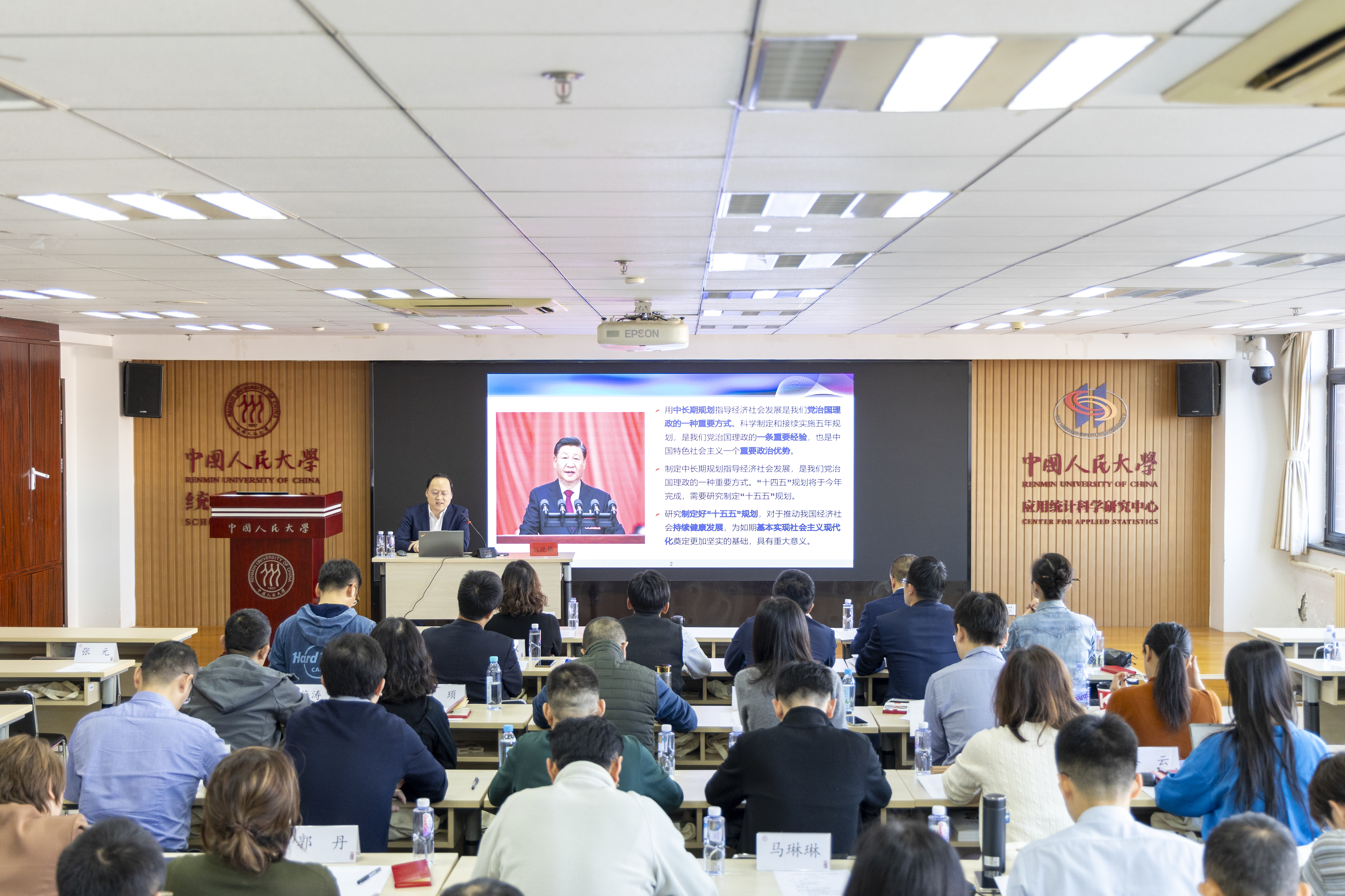 11月9日上午,开班式在明德主楼1030教室举行。中国人寿再保险有限责任公司党委委员、纪委书记、总经理助理敦浩,中国人寿再保险有限责任公司党委委员、总经理助理何瑛,中国人民大学统计学院院长李扬出席开班式,中再寿险领航工程二期干部培训班49名学员参与开班式。开班式由中国人民大学统计学院教授周明主持。