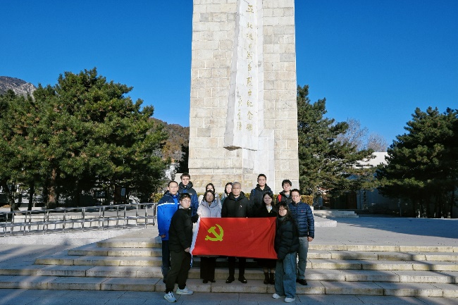 实践调研首站来到平北抗日烈士纪念园。在庄严肃穆的“平北抗日战争烈士纪念碑”前,面对鲜红的党旗,全体师生党员高举右拳,重温入党誓词。铮铮誓言,字字千钧,表达了师生党员不忘初心、牢记使命,为党和人民事业奋斗终身的坚定决心。