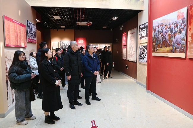 随后,在讲解员的引导下,师生一行参观了“光辉典范——抗战时期中国共产党党风廉政建设展”。展览分为“积基树本 赓续前行”“延安作风 光辉典范”“常抓不懈 警钟长鸣”三个部分,生动再现了老一辈革命家廉洁奉公、艰苦奋斗的感人事迹,深刻诠释了“延安作风”对赢得民心、取得胜利的关键作用。师生们驻足观看,深入交流,从党的自我革命历史源流中汲取精神养分,接受了一次深刻的党性锤炼和廉政文化教育。