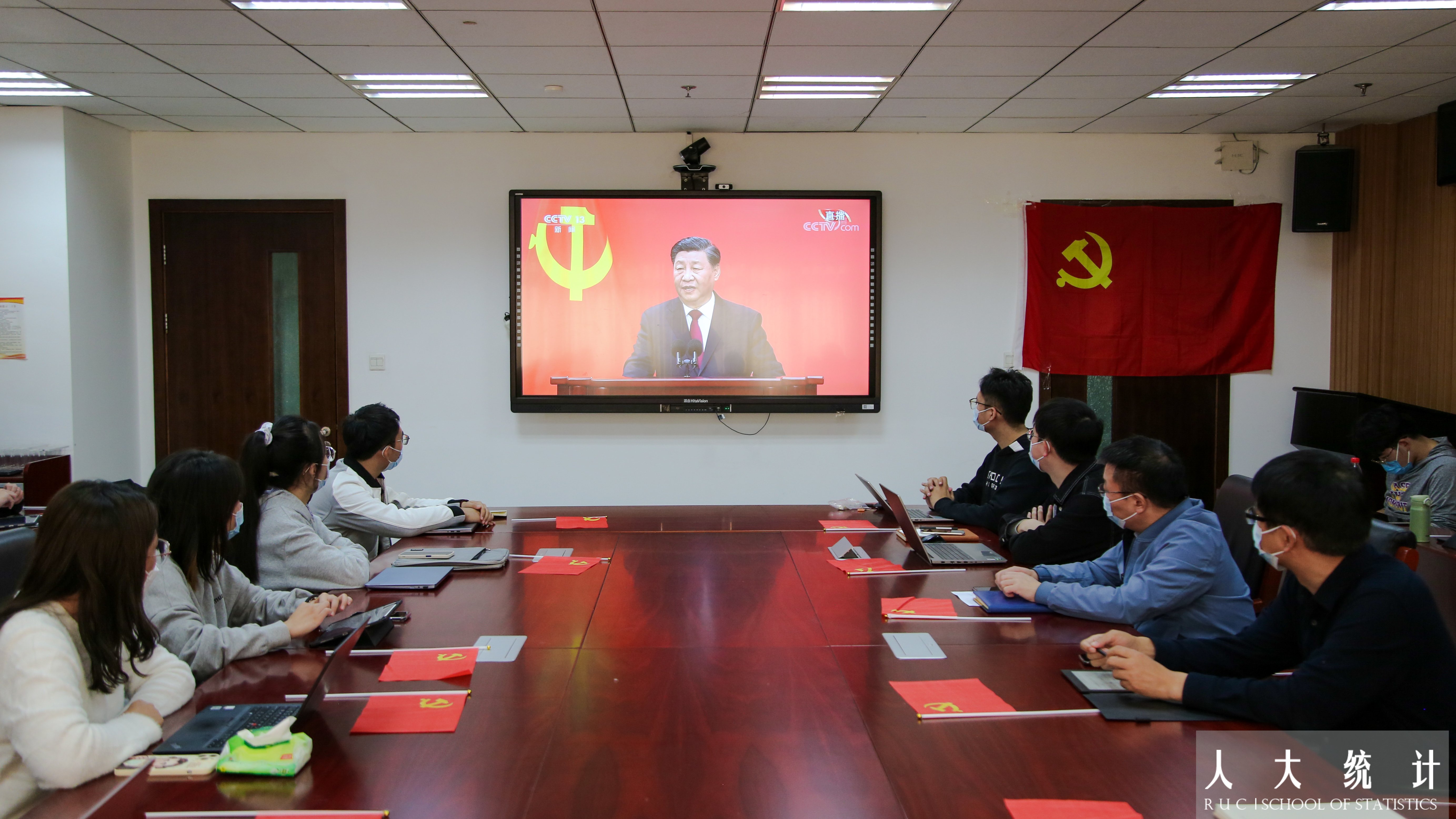 统计学院党委组织师生代表在明德主楼1016会议室集体观看见面会直播,各基层党团支部组织同学们线下同步收看直播。