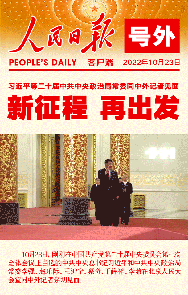 2022年10月22日,中国共产党第二十次全国代表大会胜利闭幕,23日,二十届一中全会选举产生新一届中央政治局委员,新一届中央政治局常委与中外媒体见面。这是我党经过百年征程,在面对新的挑战和机遇,在新时代迈向新征程的重要一届领导集体,希望能够继续带领全党和全国各族人民砥砺奋进,不断前行。